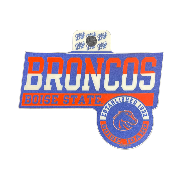 Show your support for the Boise State Broncos with this Blue84 Sticker. This sticker is made of durable vinyl and features the Boise State logo. Show your team spirit and join the Bronco Nation!