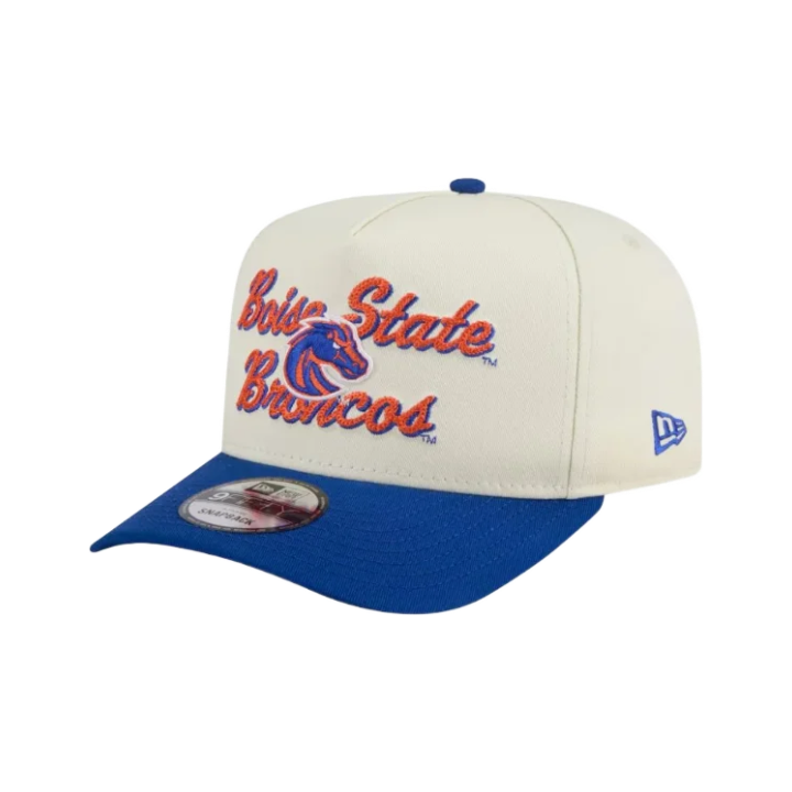 Boise State Broncos New Era Cursive 9Fifty A-Frame Snapback Hat (Cream/Blue)